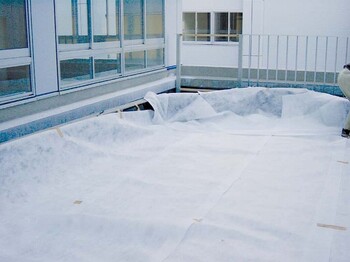 客土中の水分を排出し、客土流出を防ぐ合成繊維不織布フィルターです。長時間、目詰まりする事なく機能します。